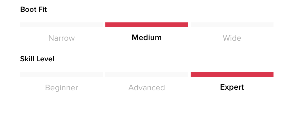 Lightweight shell and cuff construction with key structural areas reinforced for powerful skiing.
