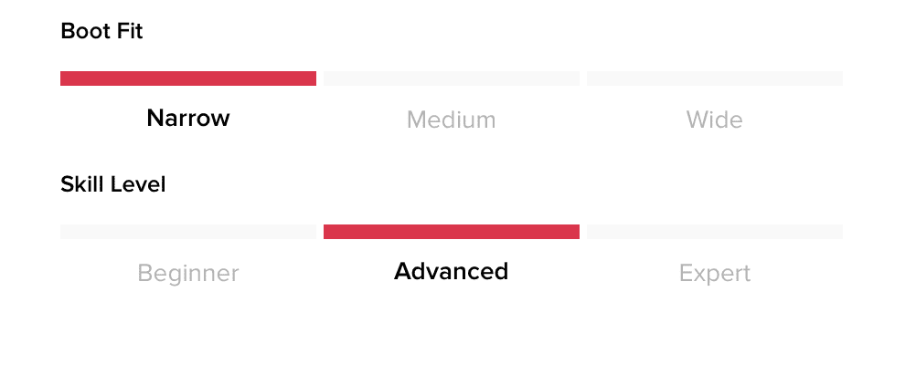 Lightweight shell and cuff construction with key structural areas reinforced for powerful skiing.