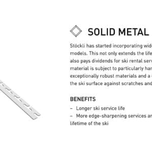 I investeringen i et par Stöckli ski får man meget mere end blot ski, man sikrer sig tværtimod mange års fantastisk skiløb. Kvalitets materialerne giver en imponerende holdbarhed og slides i langt mindre grad sammenlignet med andre ski. Ligeledes vil sålen glide bedre og holde længere mellem hver voksning. Det vil tydeligt kunne mærkes fra første tur på dine helt nye og professionelle Stöckli ski.