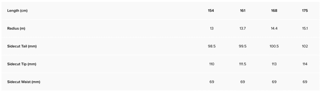 Active Camber increases effective edge contact for better edge grip on icy slopes and stability.